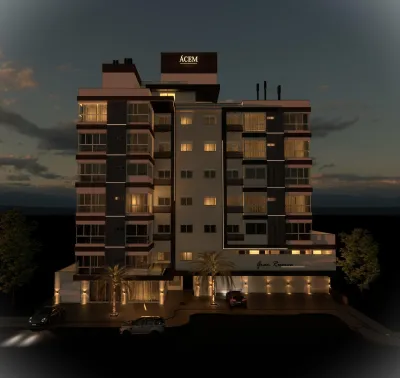 Fachada imponente com arquitetura moderna, iluminação em LED que valoriza o empreendimento e reforça o alto padrão.
